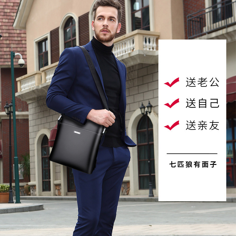 Seven Wolves Single Shoulder Bag Men's Shoulder Bag Inclined Satchel Bag Men's Bag Casual Business Genuine Leather Briefcase Bag Leather Bag Small