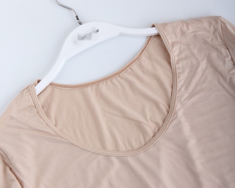 Ladies Large Collar Long Sleeve Ultra Thin Flesh Color Modal Cotton Heater Shirt Low Neck Slim Bottom Shirt Autumn Shirt