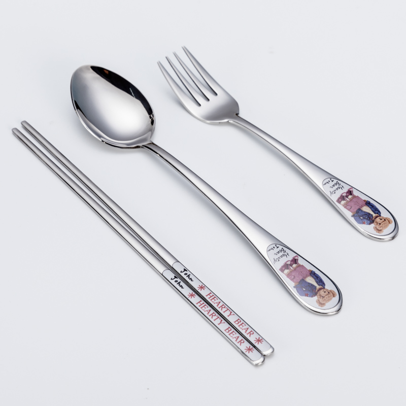 South Korea 304 stainless steel teddy bear children cutlery sets chopsticks spoon fork with four sets of students
