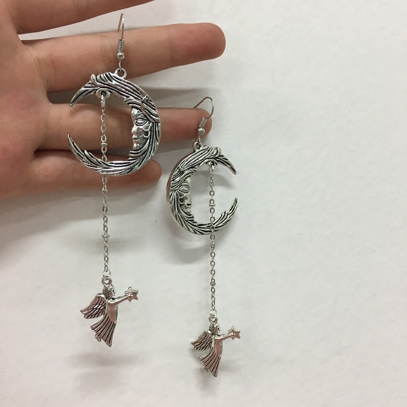 Cherry design hand-work exaggerated moon-chasing angel fairy earrings fantasy star-moon ear clips