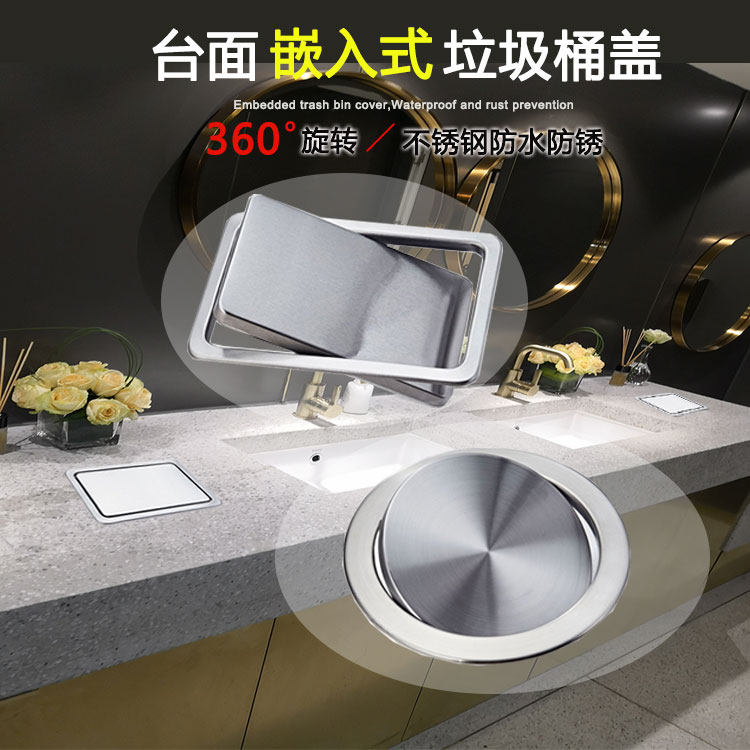 Square Countertop Recessed Lid 304 Stainless Steel Lid Kitchen Trash Can Lid 20CM Round Clamshell Shake Lid