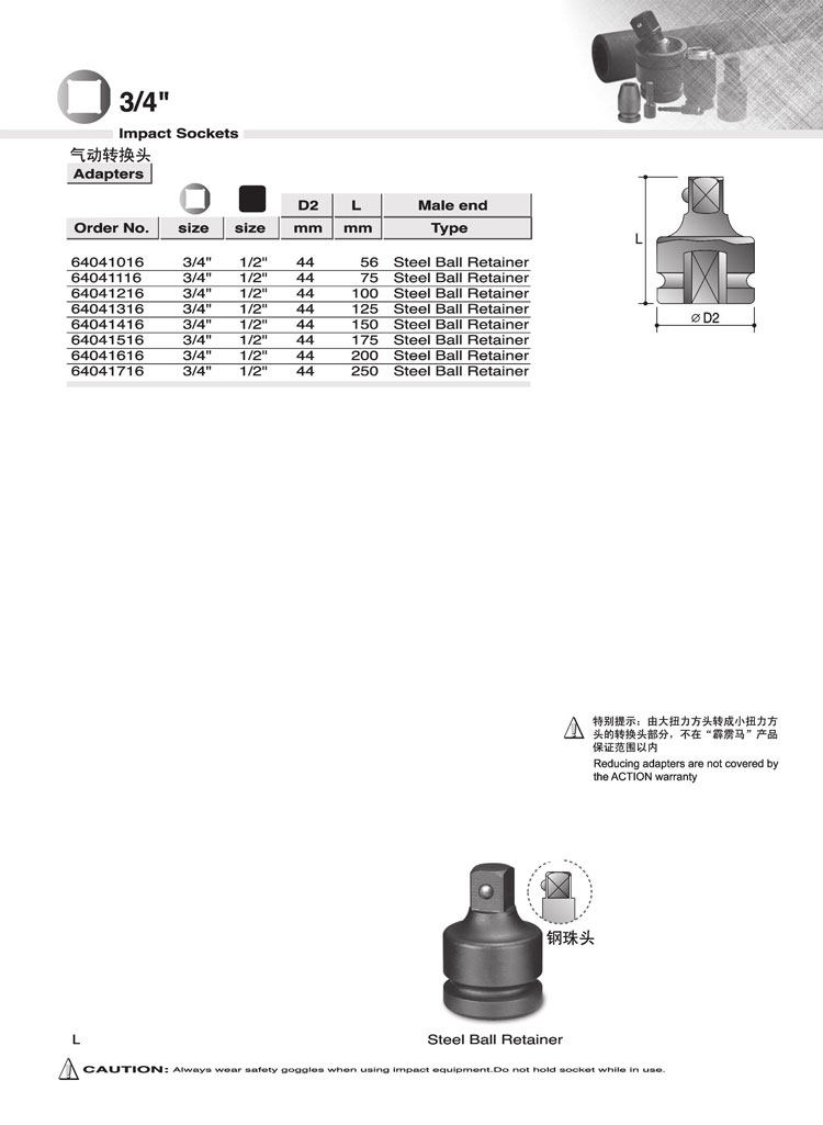 Thunderbolt socket 3 4”F*1 2”M pneumatic conversion head steel ball head 64041016~64041716