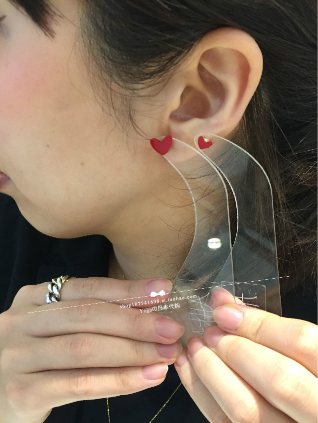 Japan Live Direct Post AHKAH 18k Gold Little Red Heart Island Yang Vegetable Love Ear Needle