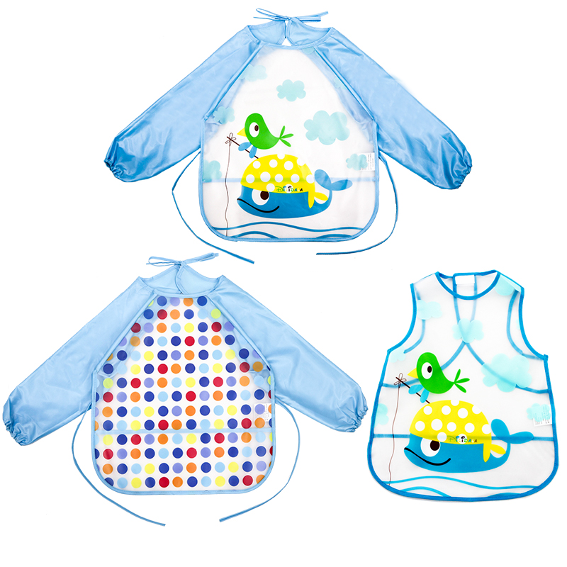 Baby Eating Hood Clothes Summer Long Sleeves Waterproof soft Anti-wearing clothes Children's kindergarten Baby eating clothing Purse Thin