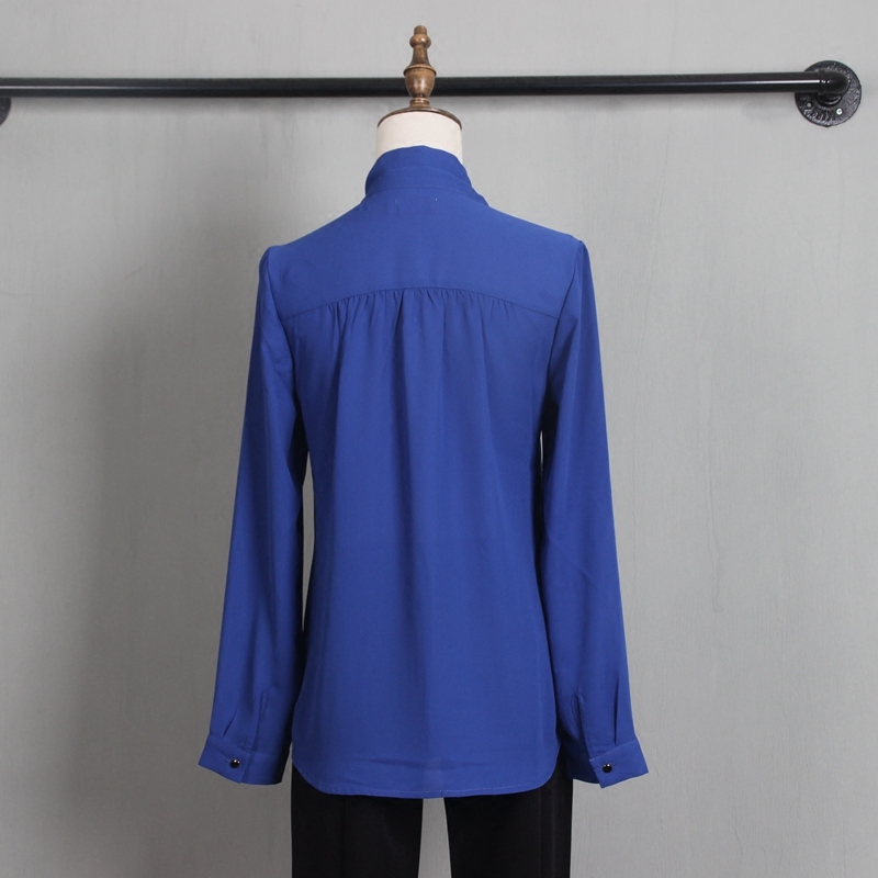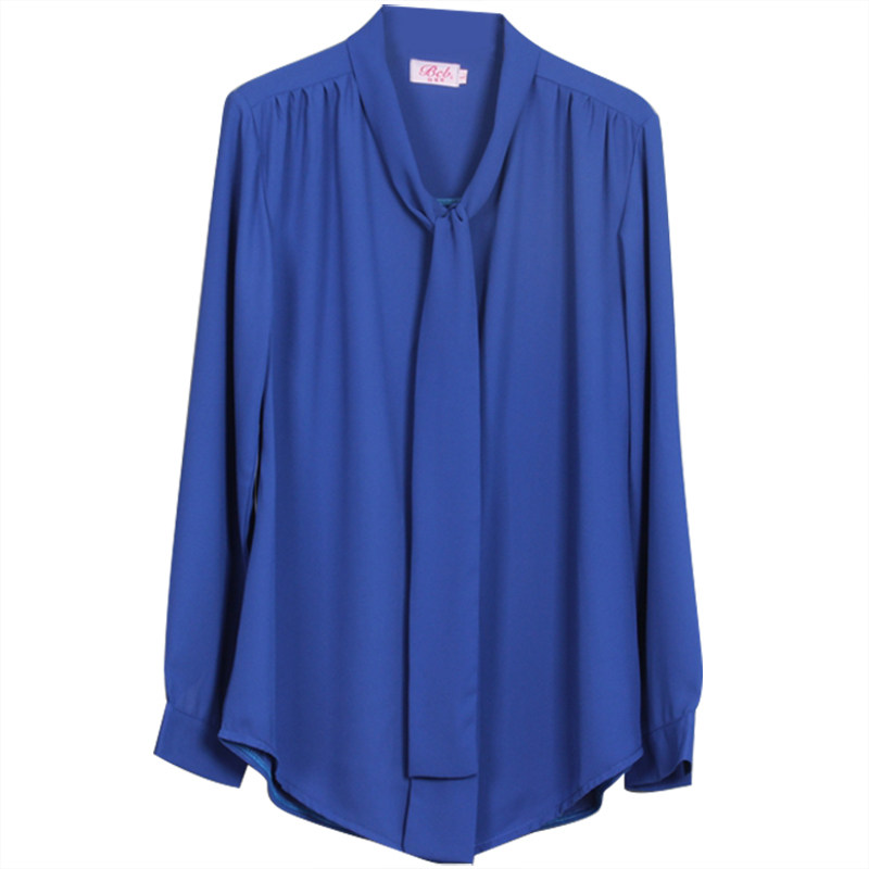 Temperament Butterfly Knot With Upright Collar Pure Color Long Sleeve Snowspinning Shirt Woman 2022 Chunqiu New OL commuter large size