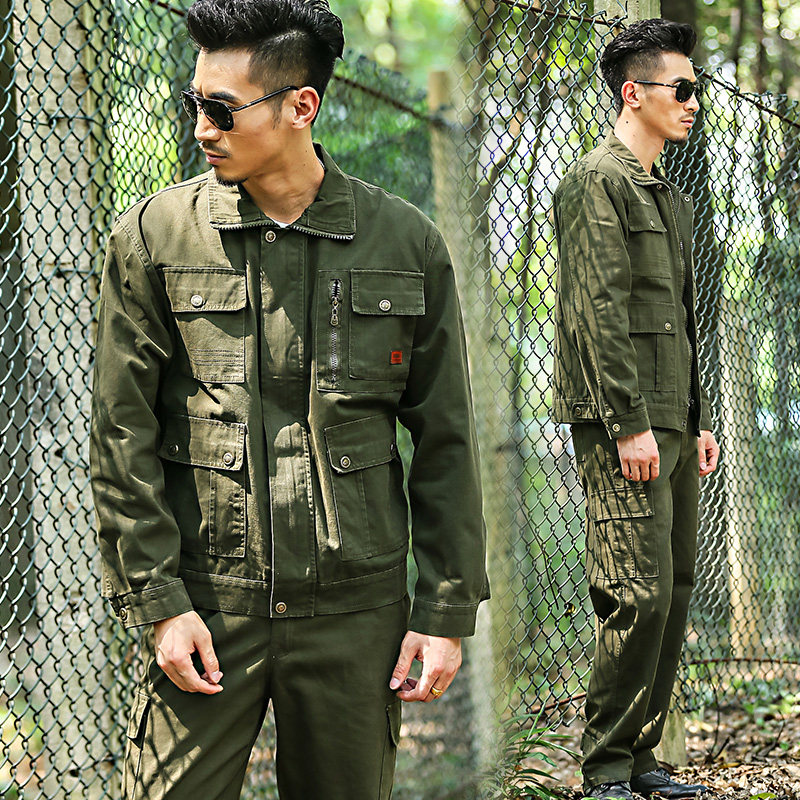 Pure cotton cotton welding overalls set men's labor protection clothing anti-scalding soft wear-resistant machine repair clothing loose large pockets