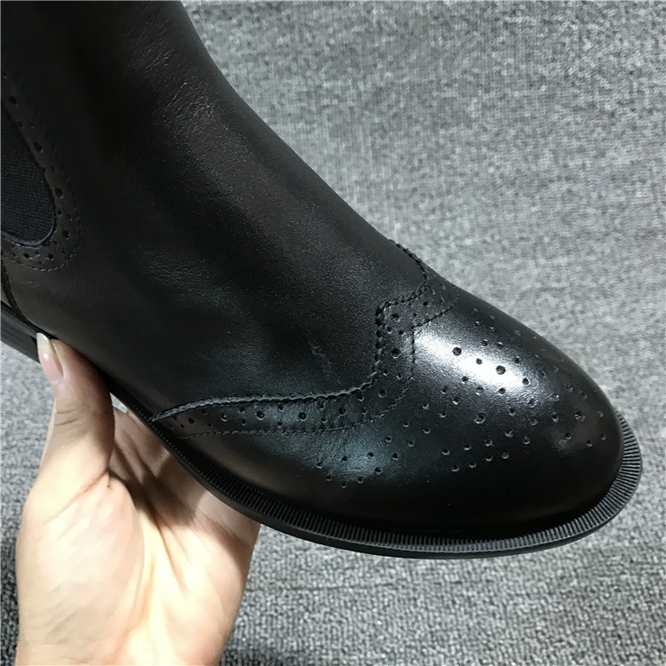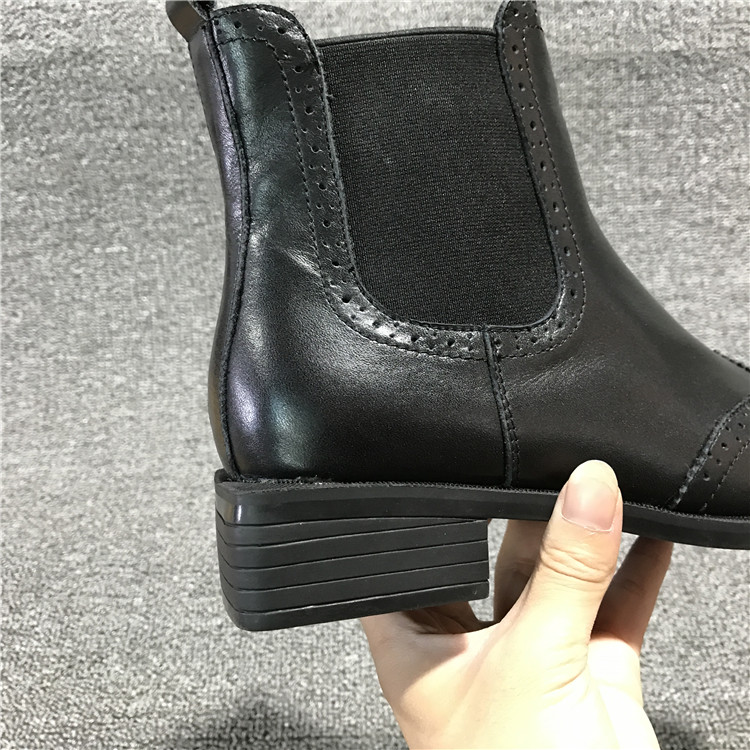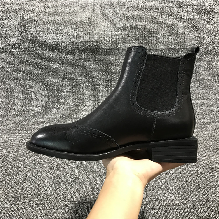 Autumn broken code new special price women's shoes leather pointed toe carved Brogue English mid-heel chunky heel women's ankle boots