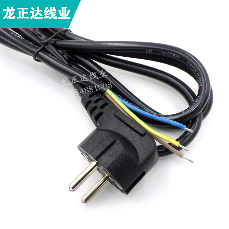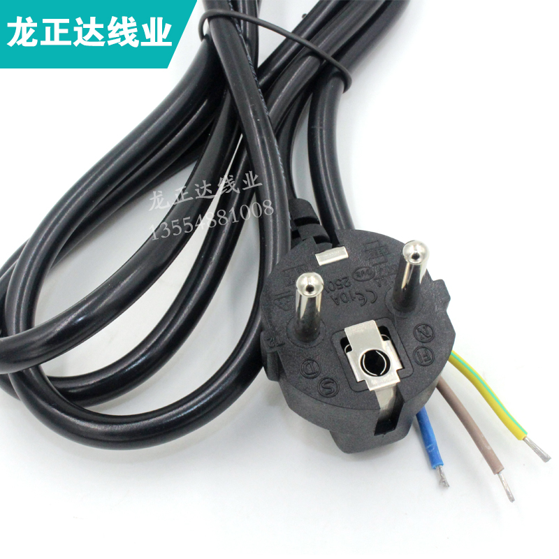 1 5 m UEFA single head bare tail power cord 3X0 75 squared three-foot European gauge three-hole electric appliance plug connecting line