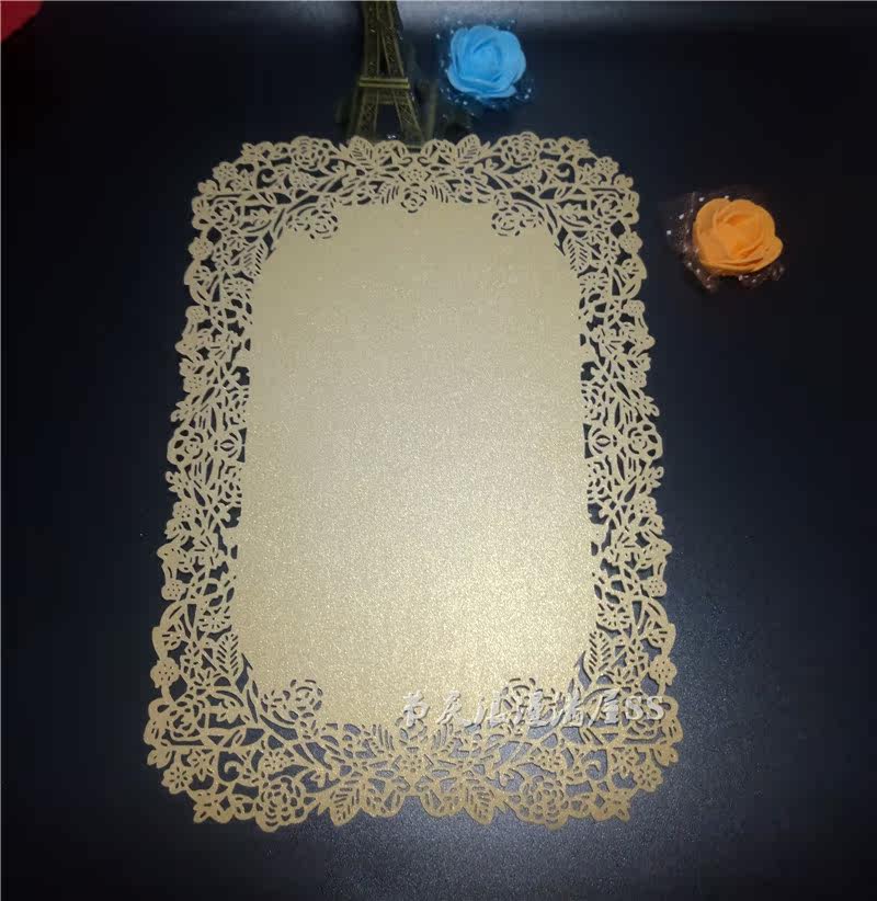 Laser Hollowed-out Rose Invitation Cambodia invites card Meal Card Pearlescent Paper Please Post Wedding Card Custom 10 sheets