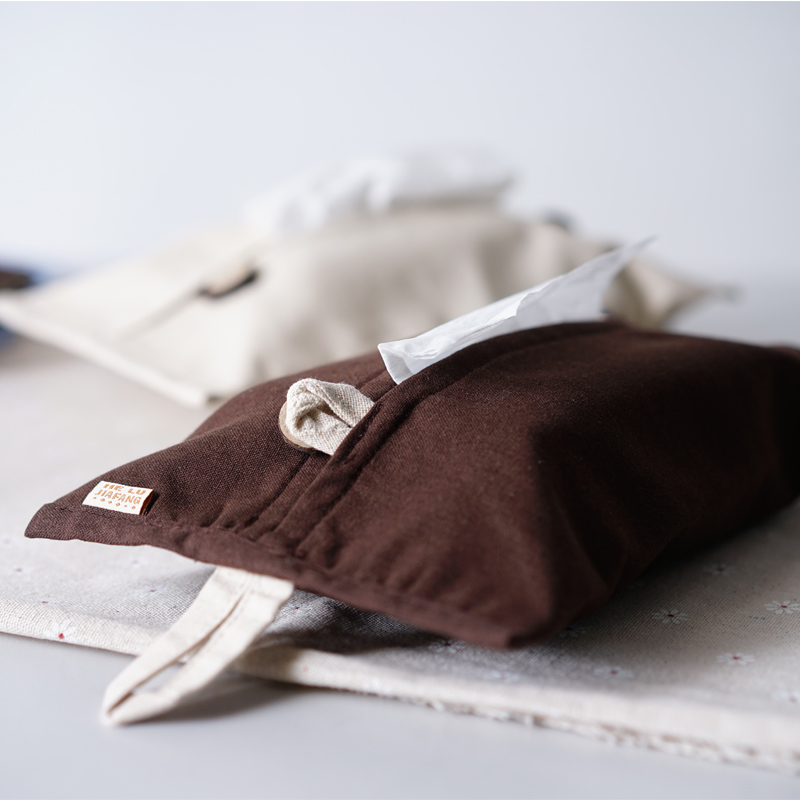 Add a little Le cloth cotton linen tissue bag Living room dining table toilet paper box Hanging roll toilet paper tissue paper cover Car removable tissue paper