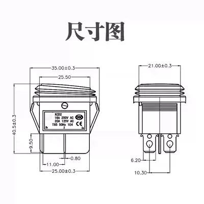 Waterproof rocker switch KCD4 KCD2-2*1 20A 4-foot red light 220V 2