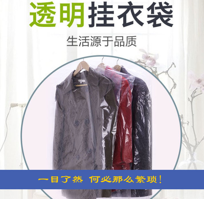 Dry cleaners hanging clothes bag dust cover coat bag transparent hanging clothes bag household thickened clothing suit storage plastic bag