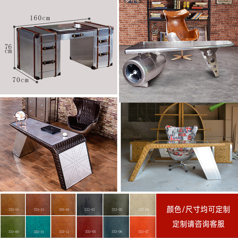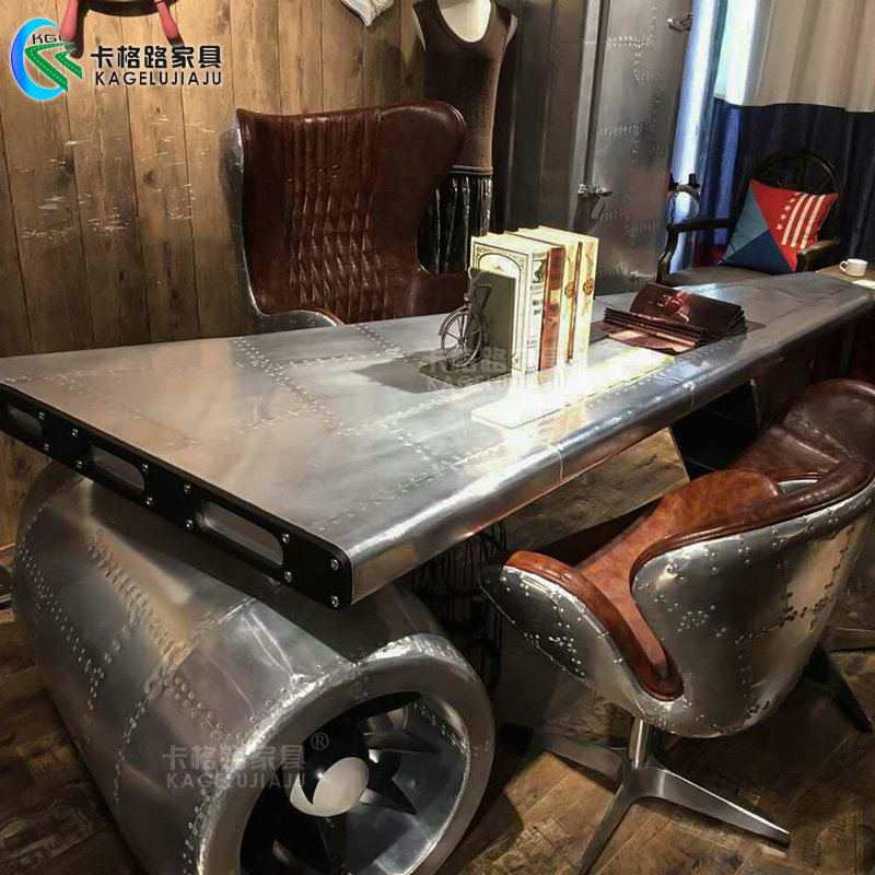 American metal industrial style loft made old aluminum skin aircraft desk boss table and chair combination creative desk punk style