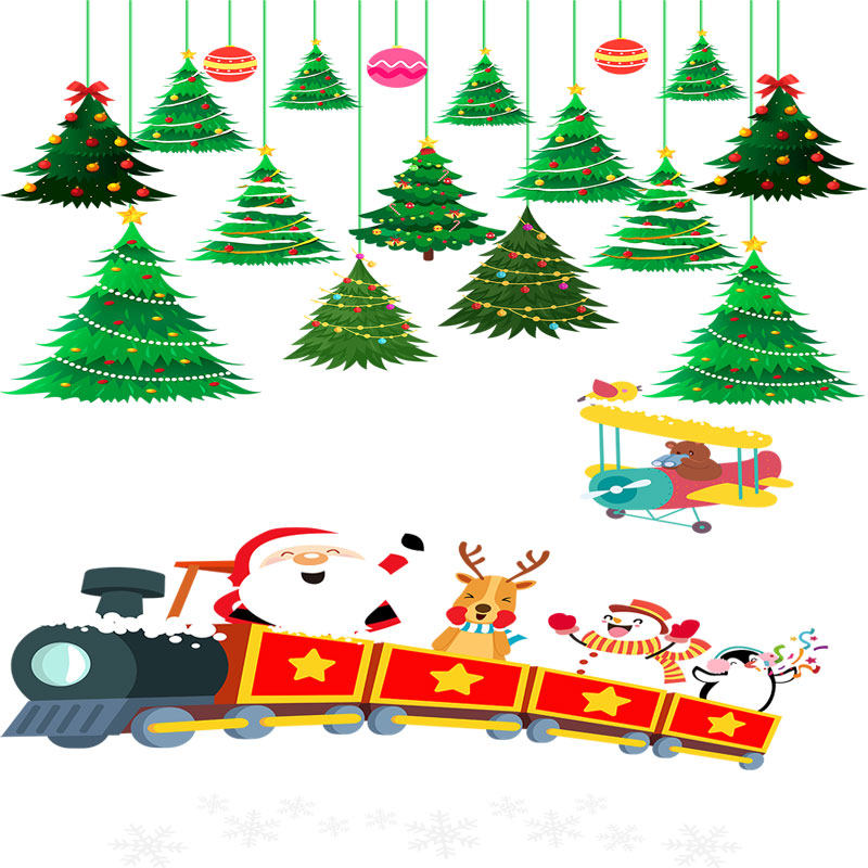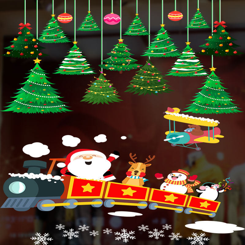 Christmas electrostatic stickers shopping mall window decoration glass door stickers old snowflakes flying deer window stickers scene layout window decorations