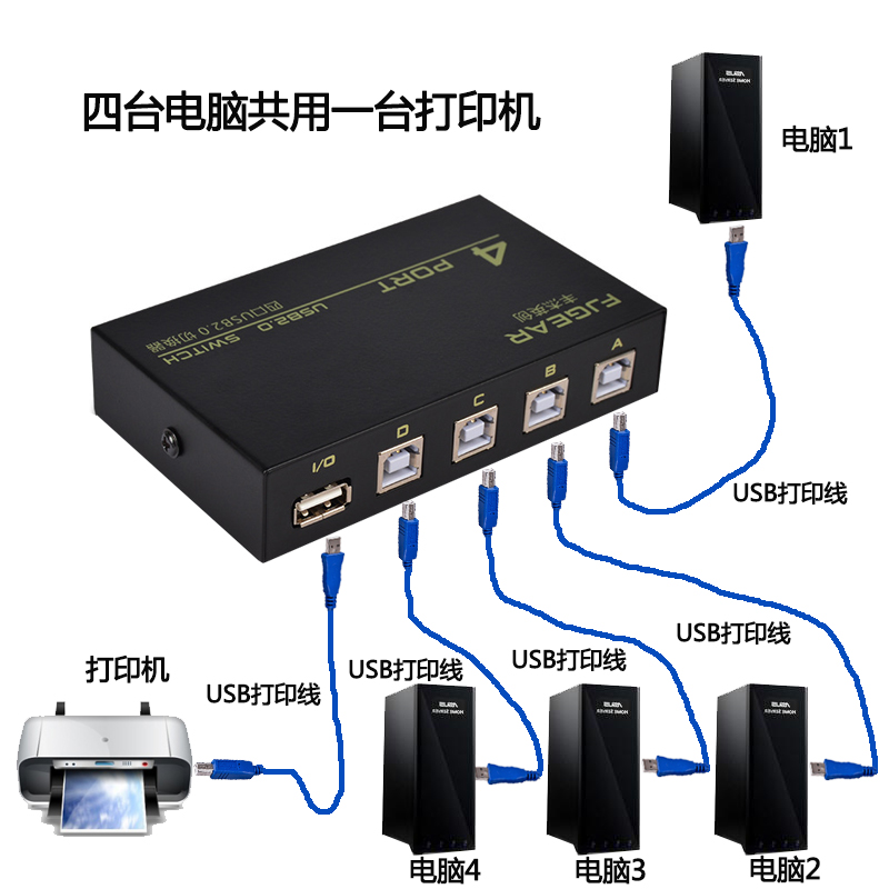 Four computers share 1 printer U - plate keyboard converter wire for 4 - ports USB sharer