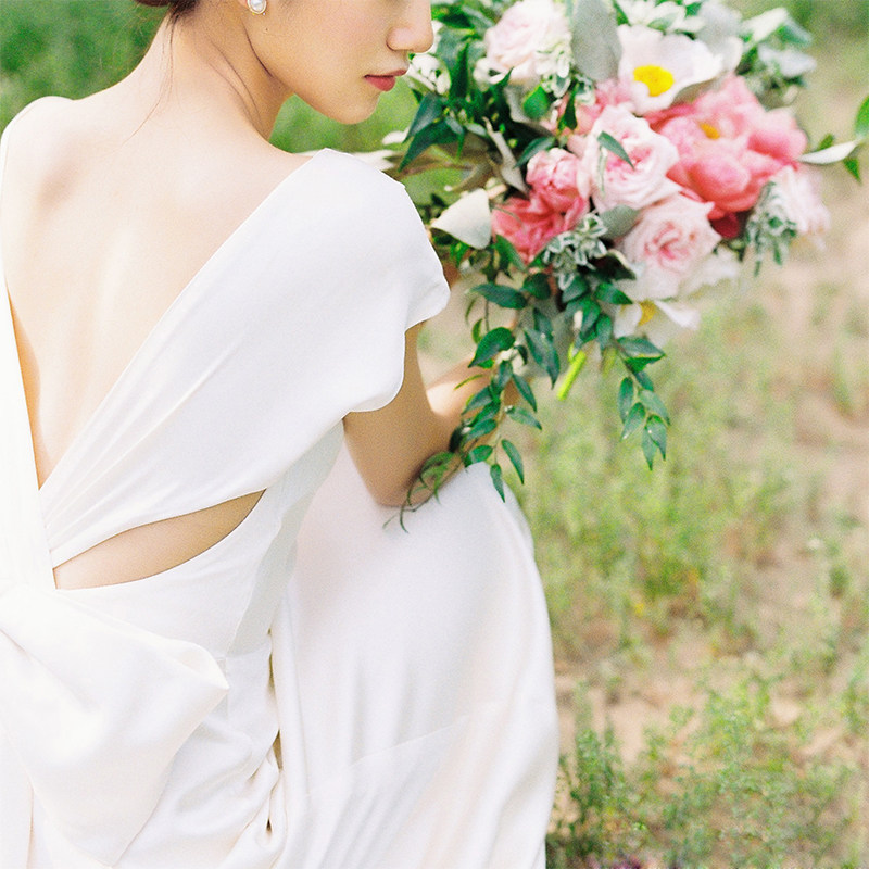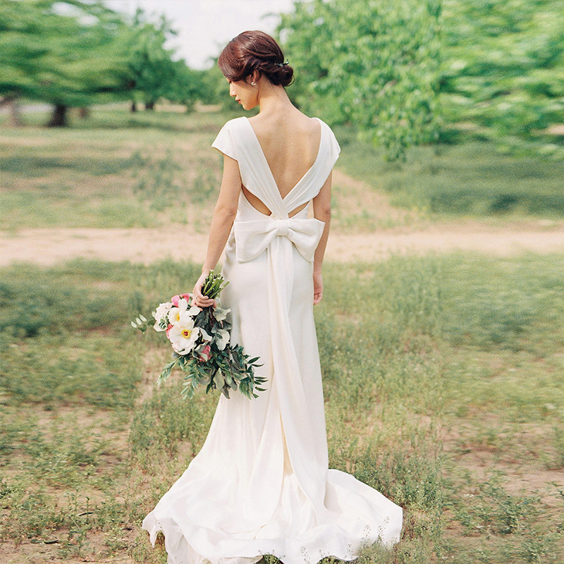 Light Wedding Dress 2023 New Simple V-neck Slim Tail Mori Long Wedding Banquet Evening Dress Temperament Travel Shoot