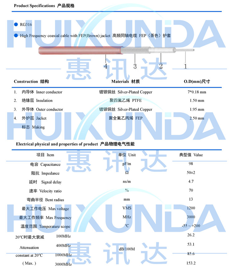RG316 Brown-SMA-J BNC-JRG316 White-SMA-J BNC-J
