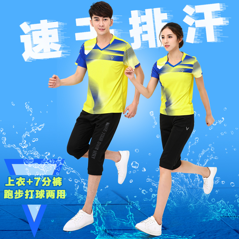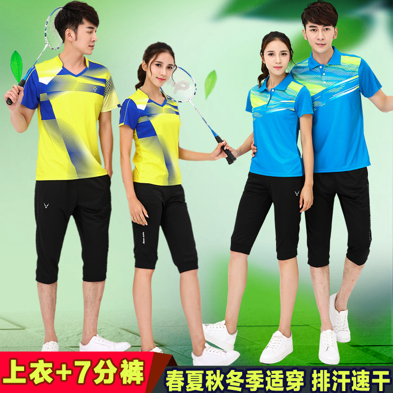Quick-drying tennis suit set for men and women couples short-sleeved spring/summer cropped pants fitness running sportswear badminton suit
