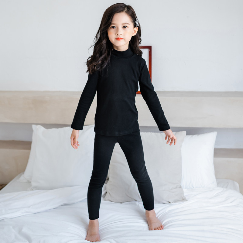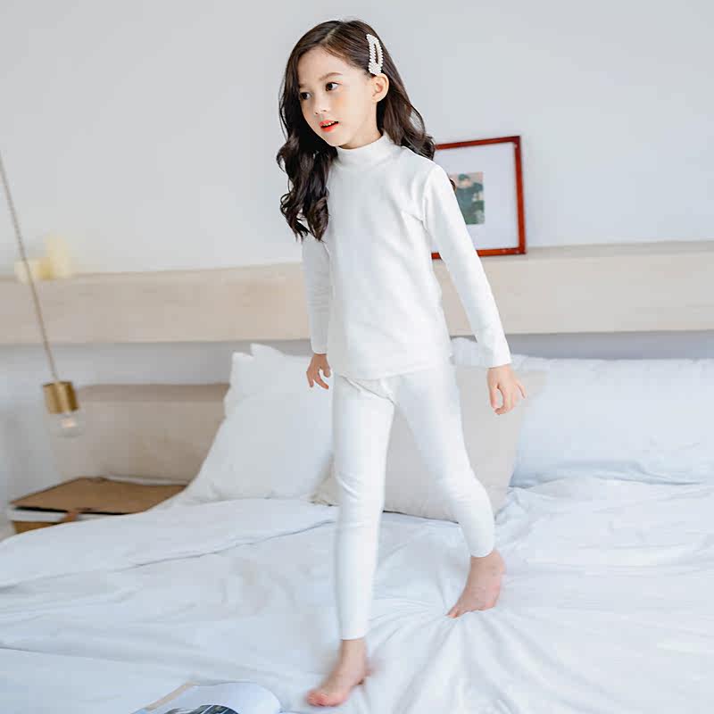 Winter children semi-high collar lingerie suit girl's home white pure cotton underwear long sleeve inner lap clothes and autumn clothes sanitary pants