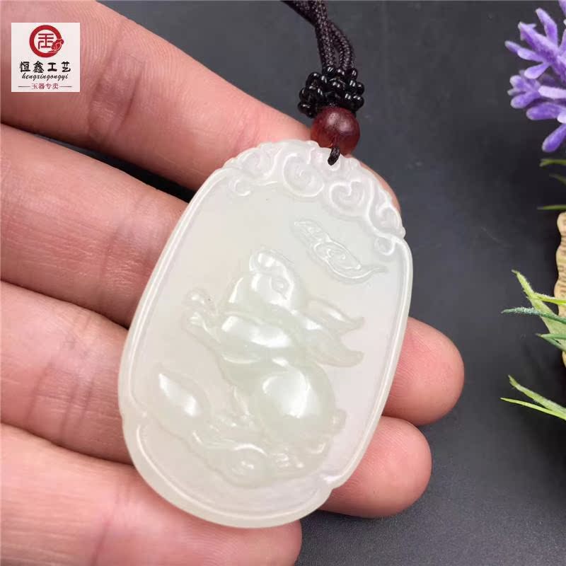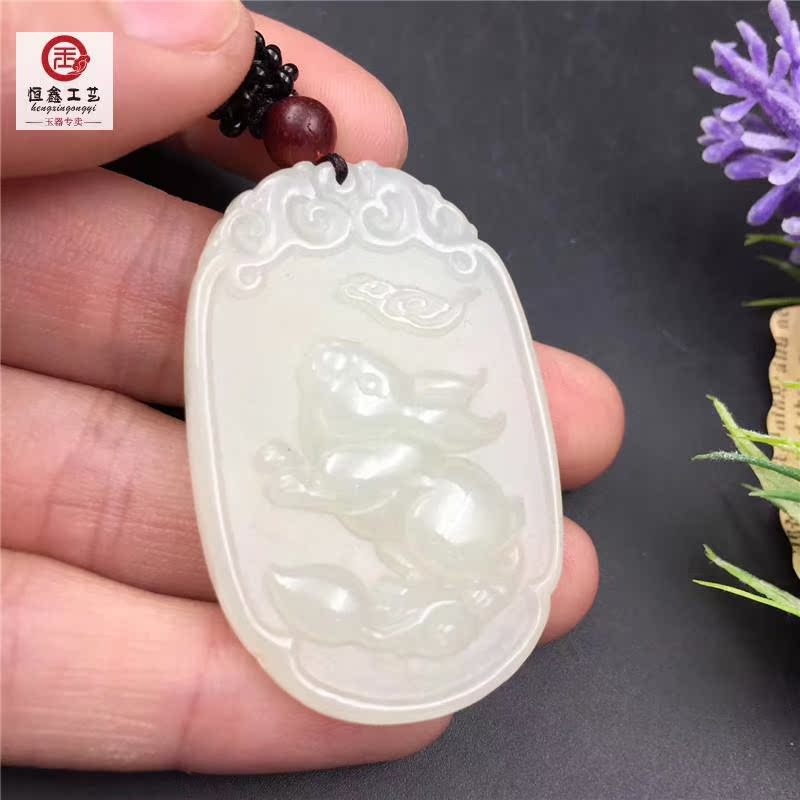 Natural new Xinjiang sheep fat and field white jade pendant duozodiac white rabbit pendant Ruyi fortune and rabbit lovers-Taobao