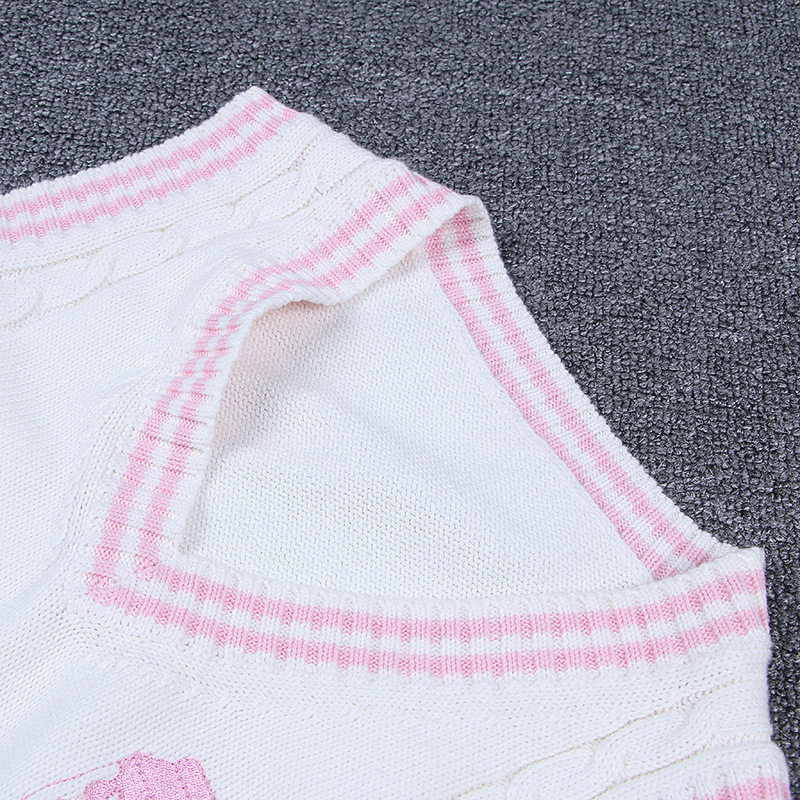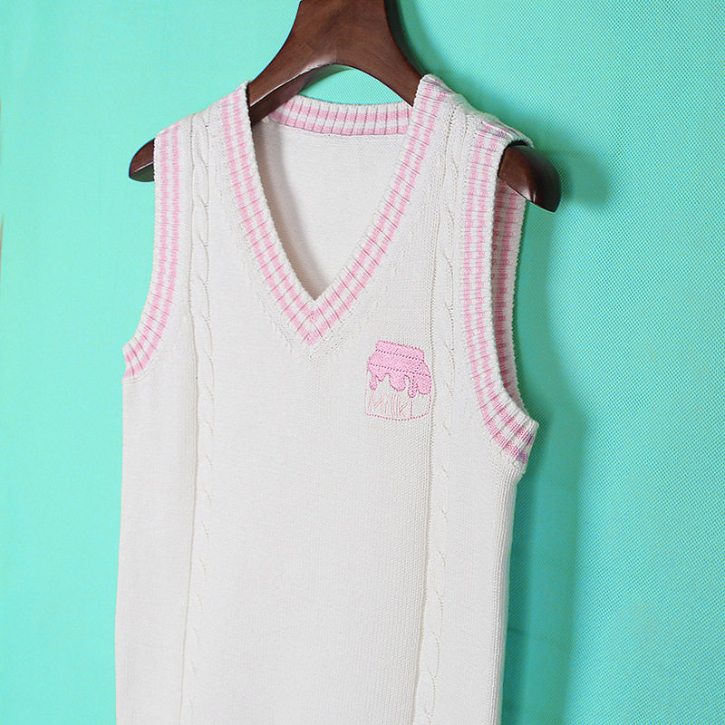 Sleeveless sweater waistcoat waistcoat Jacket Head Knitwear Cheese Embroidered College Wind Japan Soft-girl JK Uniform Blouse