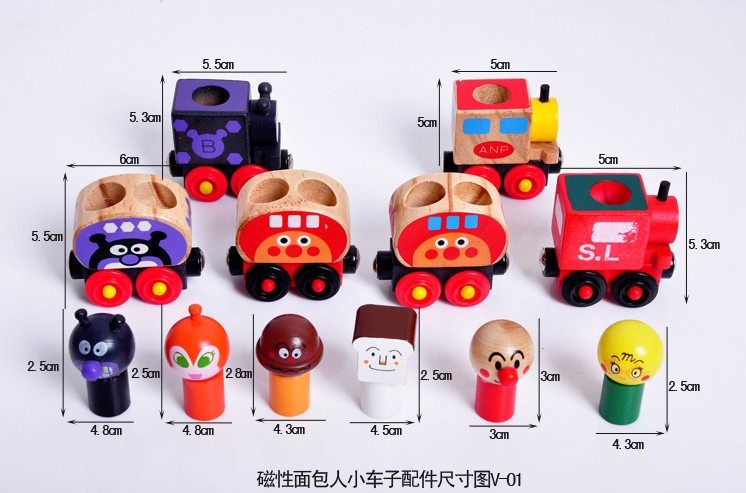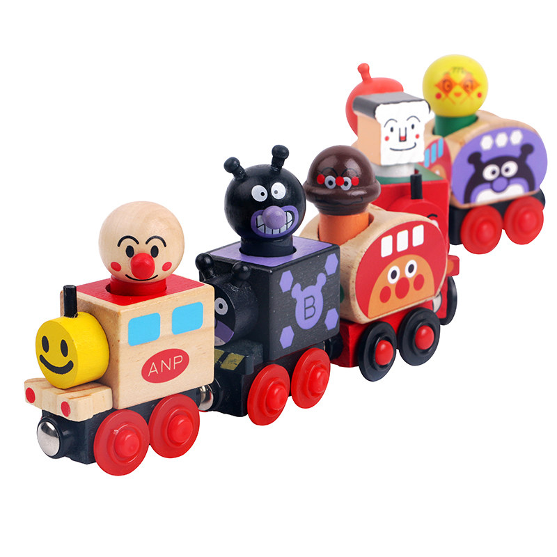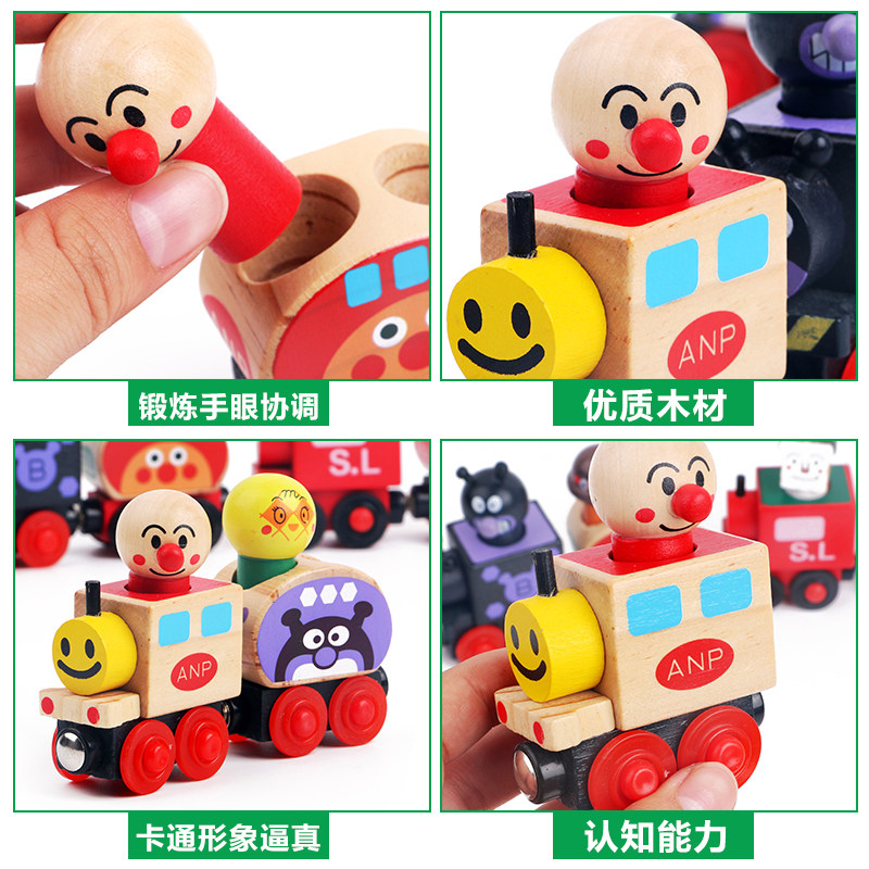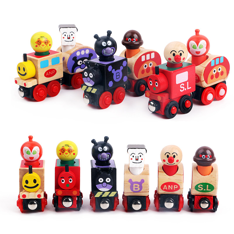 Children's Wooden Puzzle Inertial Sliding Car Boy Magnetic Mini Anpanman Car Combination Set Toys