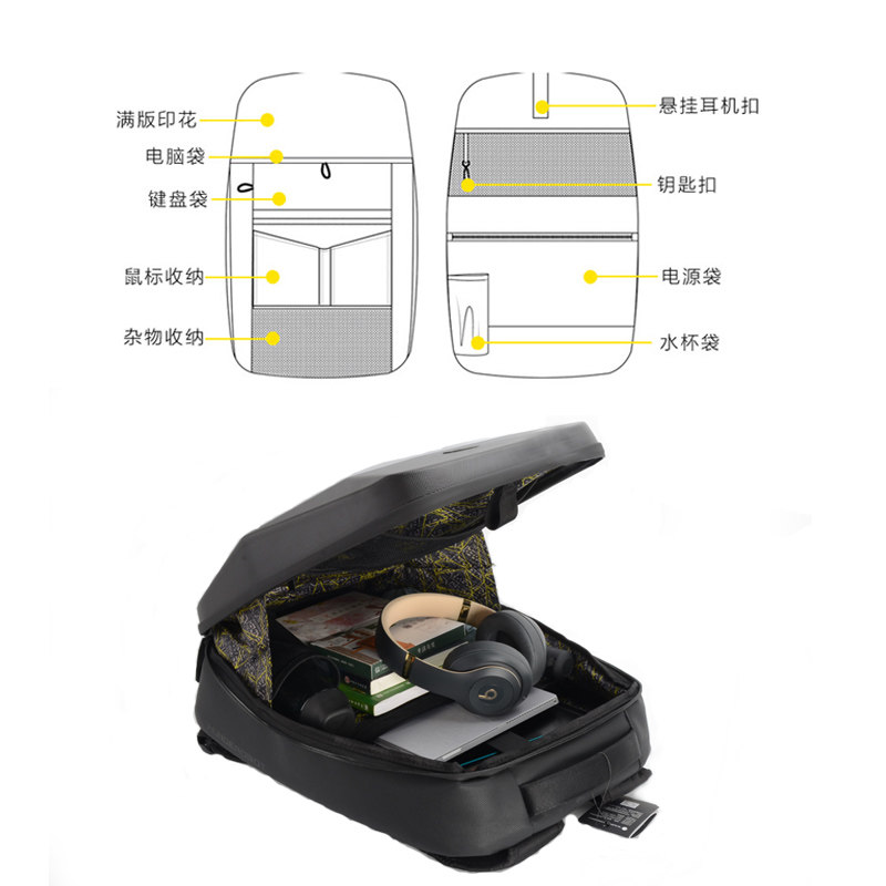 Thunder God To Tide Black Yaoyao Double Shoulder Bag Inch 15 6 inch Notebook Hard shell computer bag Men's and women's armor double shoulder bag