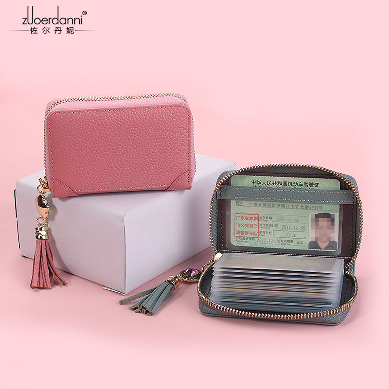 Card Bag Woman Large Capacity New Female Style Multi-Position Credit Card Set Bull Leather Card clip Korean version Laced Thin Card Bag