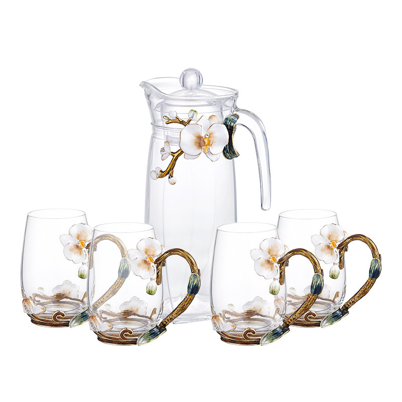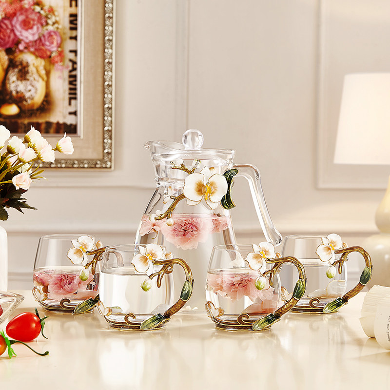 Light luxury enamel color kettle water cup set home hospitality tea set living room tea cup crystal glass wedding water set