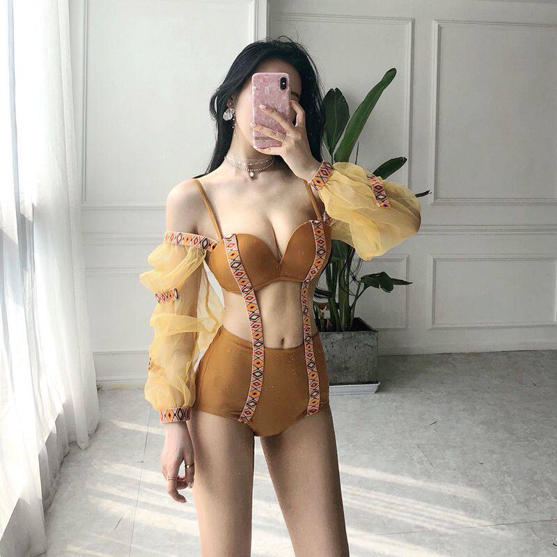 Doo point Han Shang Korea ins Sexy one-piece swimsuit Women's small chest gathered to cover the belly thin conservative hot spring swimsuit