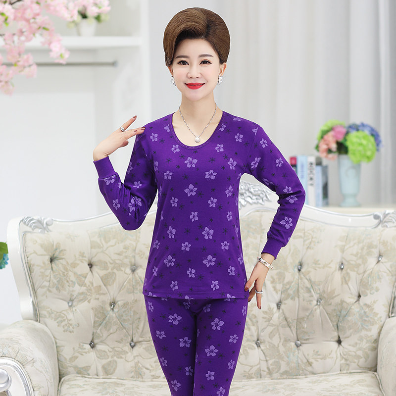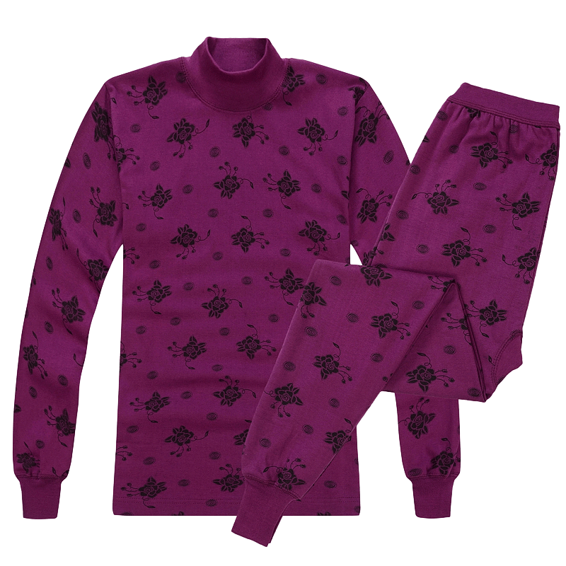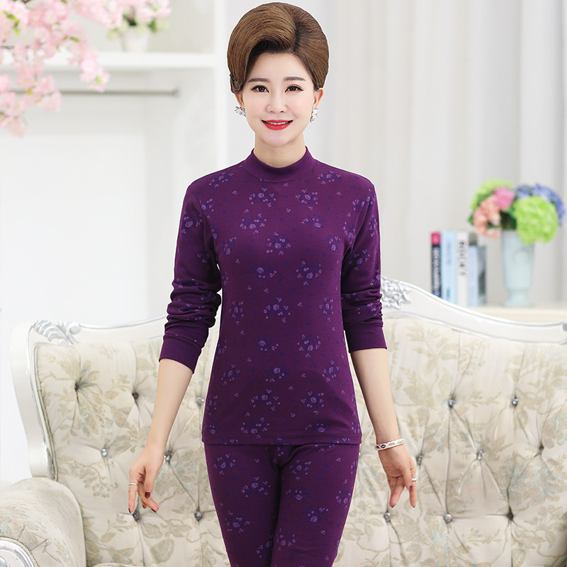 Long johns middle-aged and elderly women's cotton mother's thermal underwear medium and high collar thin section large size old man's cotton sweater suit