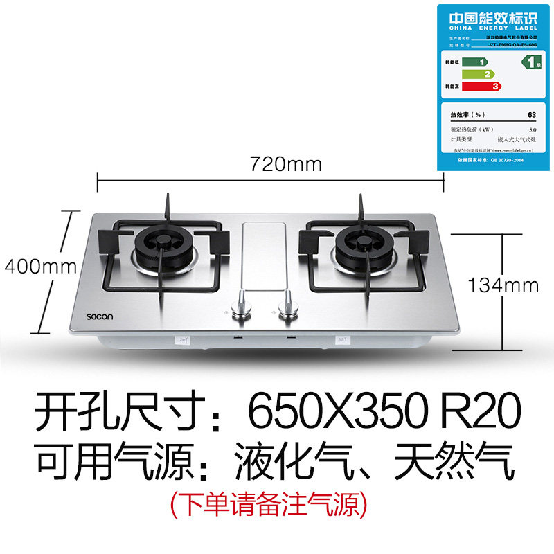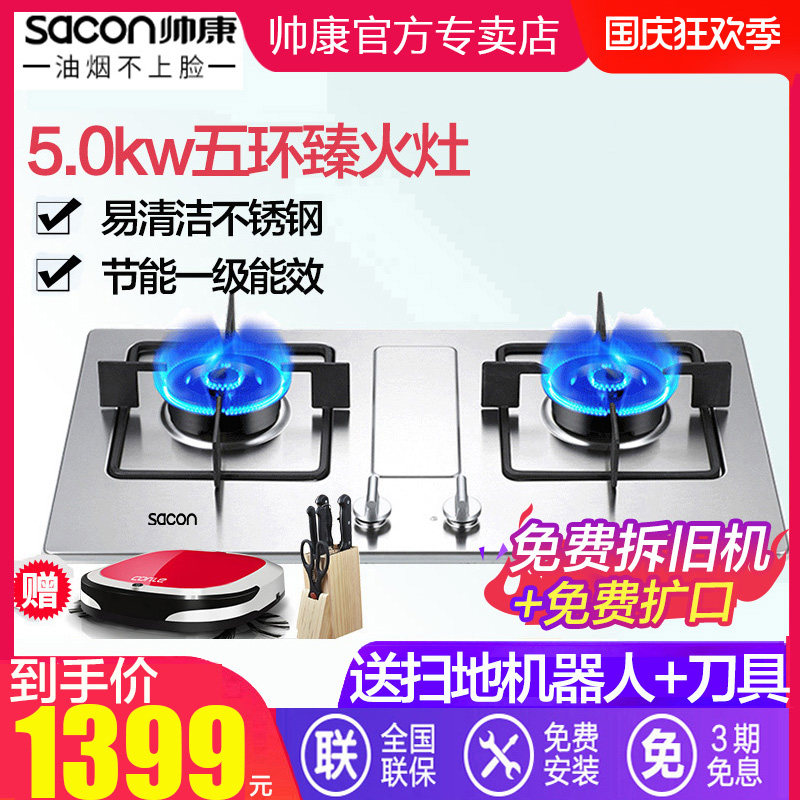 Sacon Handsome QA-E5-68G gas stove gas stove double-mouth gas stove gas stove with embedded table stainless steel