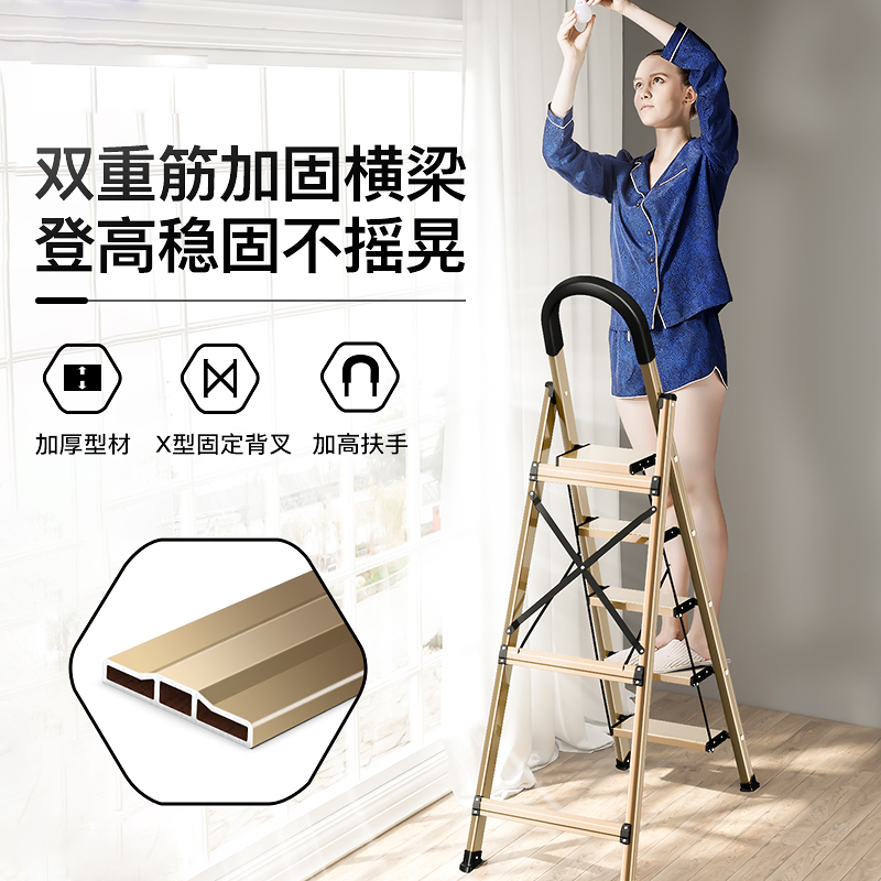 2021 new four-step ladder full pedal width 17 5CM Black Pearl thickening upgrade brown gold six-step ladder thickening upgrade titanium white Six Step thickening upgrade brown gold