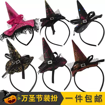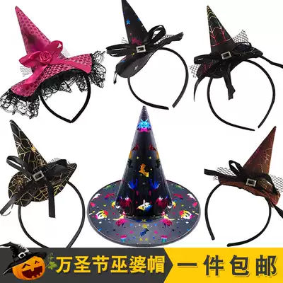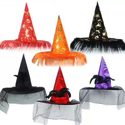 Halloween Dance Party Hat Female Rose Feather Sexy Wizard Printed Orange Pumpkin Black tip Bronzing Witch Hat