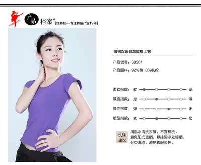 Red dance shoes thin cotton round neck chicken wing sleeve dance costume yoga top practice short sleeve dance half sleeve 2 pieces