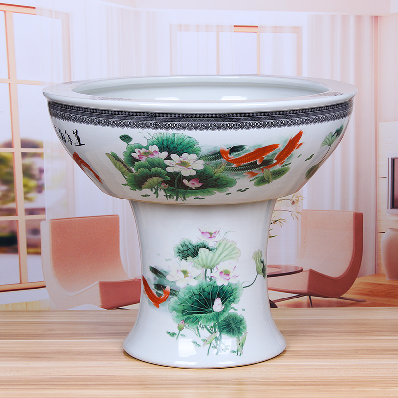 Ceramic fish tank Jingdezhen porcelain base Creative gold fish tank High foot water shallow turtle cylinder Sleeping Lotus Bowl Lotus Fish Raising Flowers