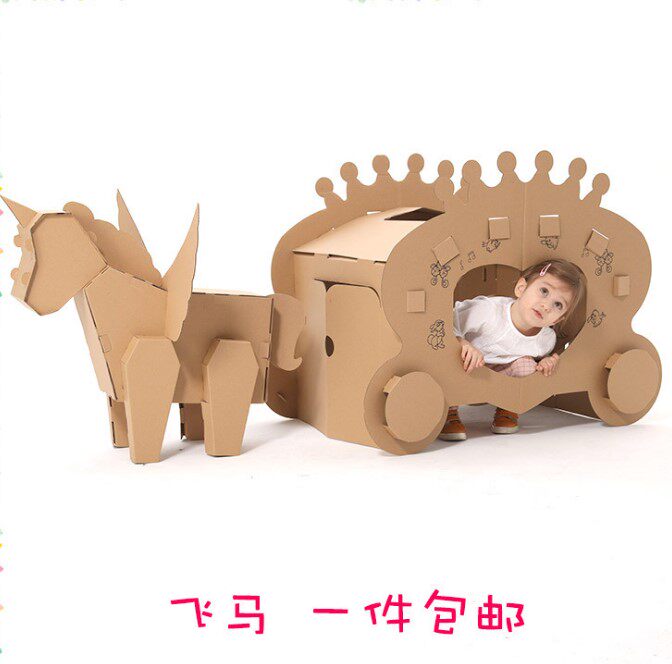 Children's cardboard dollhouse crown float small house DIY coloring play house kindergarten baby carton hut