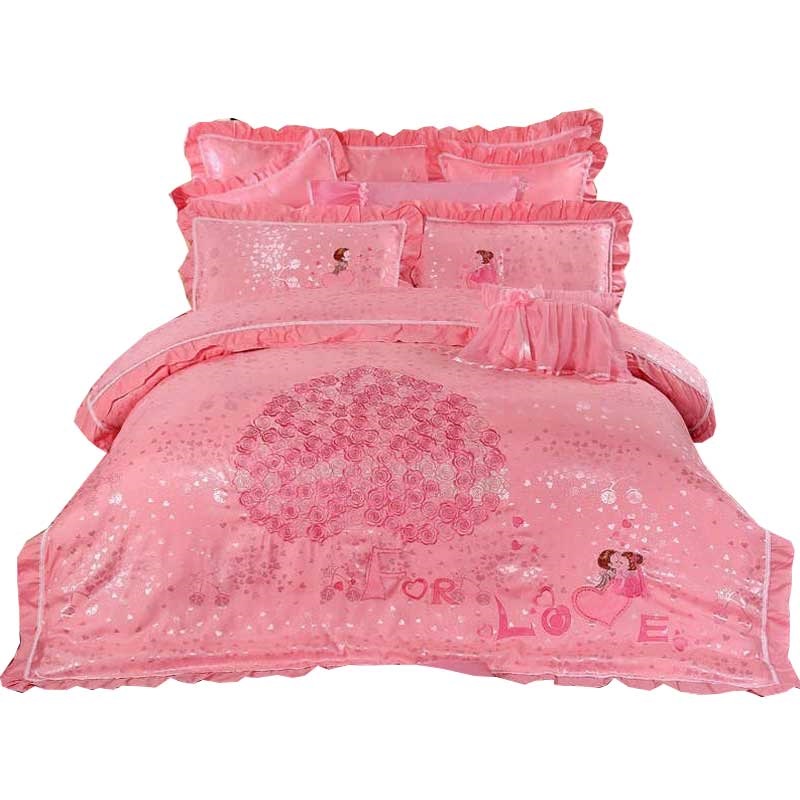 Cotton wedding four-piece group big red embroidery cotton wedding pink quilt cover sheet bed cover new wedding festive bedding