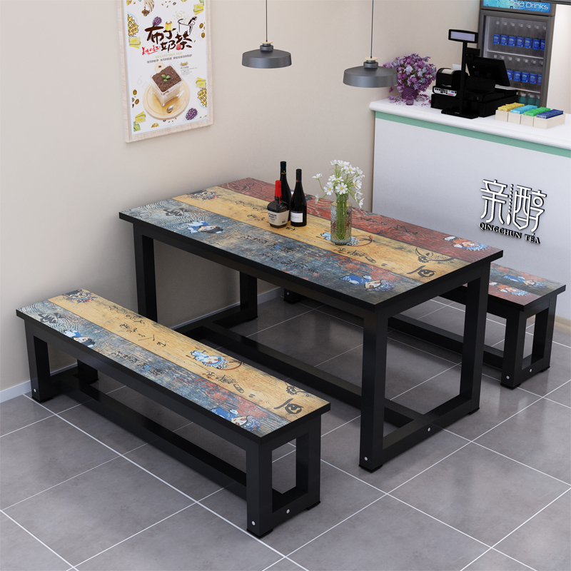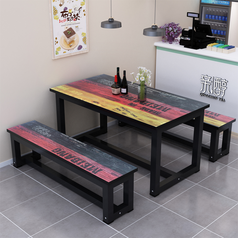 Simple and modern fast dining table and chair combination snack table canteen table rental household 4 people 6 people rectangular dining table