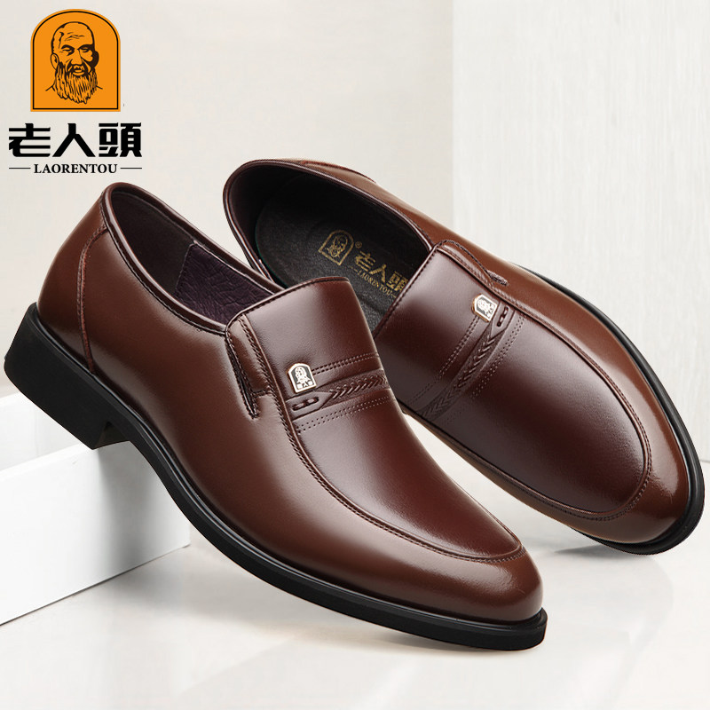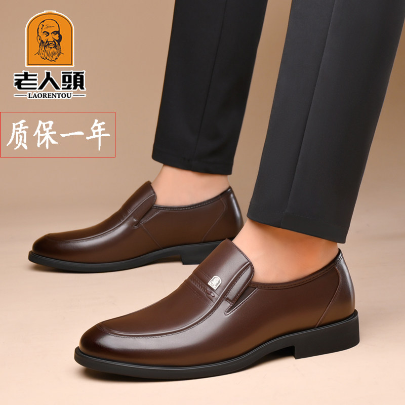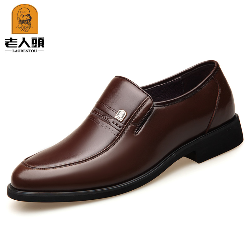 Old man's head men's shoes autumn and winter warm leather men's business formal leather shoes plus cotton small size dad shoes men's casual shoes