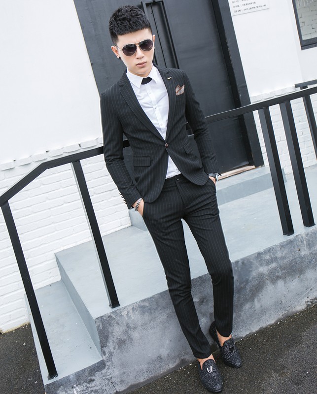 Suit men's fashion slim Korean version of the youth three-piece suit new trend handsome nightclub hair stylist small suit suit