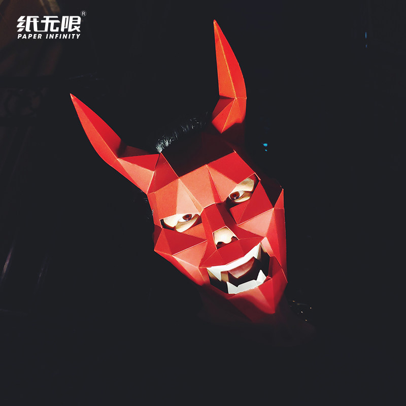 Half-face evil devil mask with horns and skull paper die diy horror Halloween Christmas Makeup Fake Face Dance Party Pie