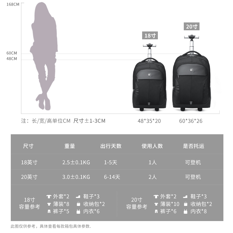 Aoking Aoking trolley backpack travel business trip female student large capacity large wheel boarding backpack boy schoolbag