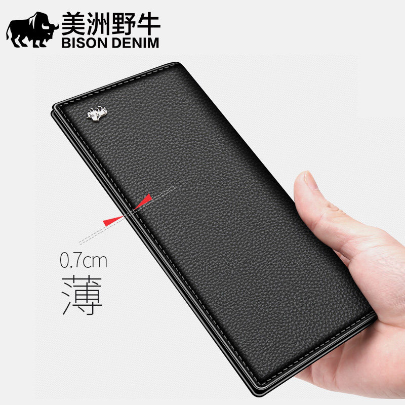 American bison wallet male leather Korean edition Young Wallet Ultra thin multi-card men zip wallet bull skin