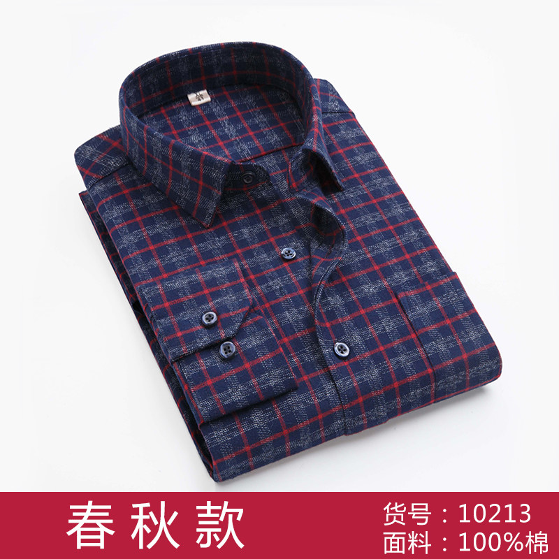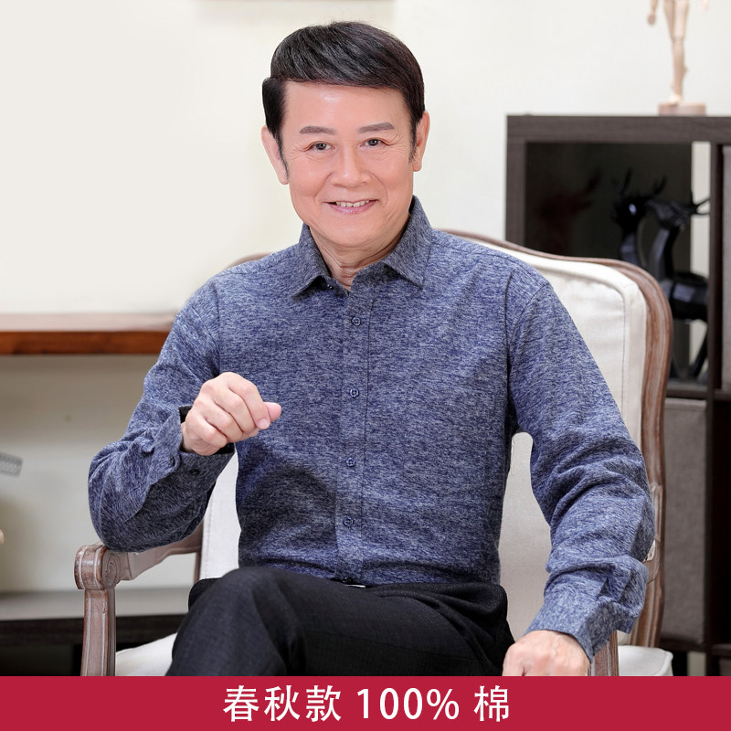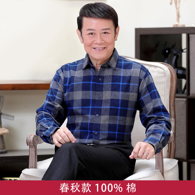 Spring and autumn men's long sleeve shirt in old age pure cotton mill wool garnter thickened inch cardiovert dads warm all cotton large size