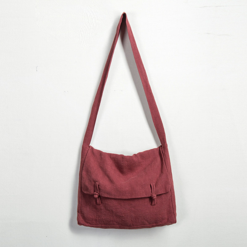 Vintage Chinese style men's bag Linen one shoulder oblique cross cotton and hemp bag plate buckle ethnic women's bag casual monk coarse bag