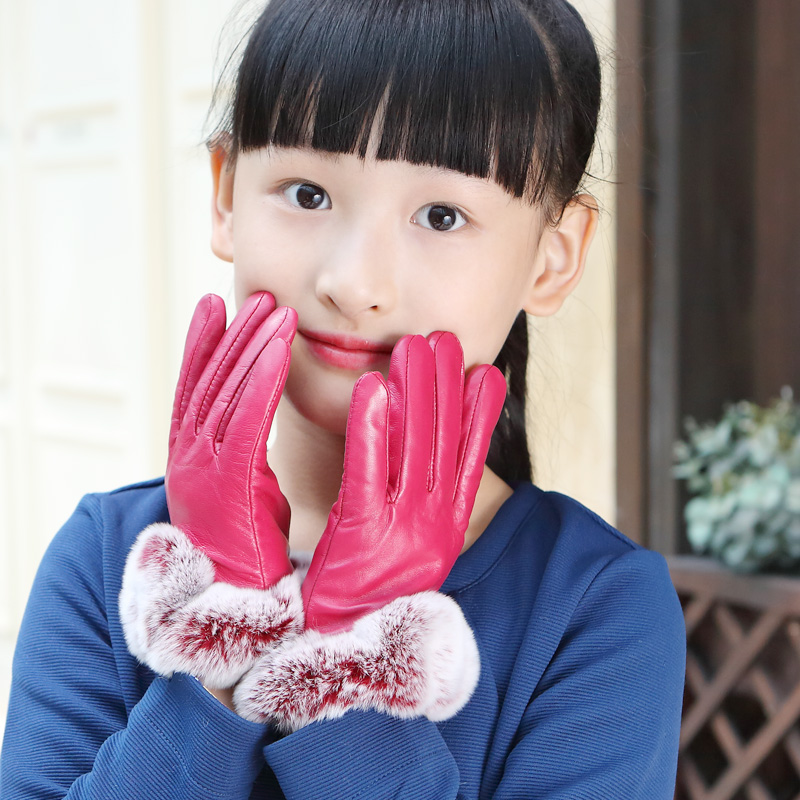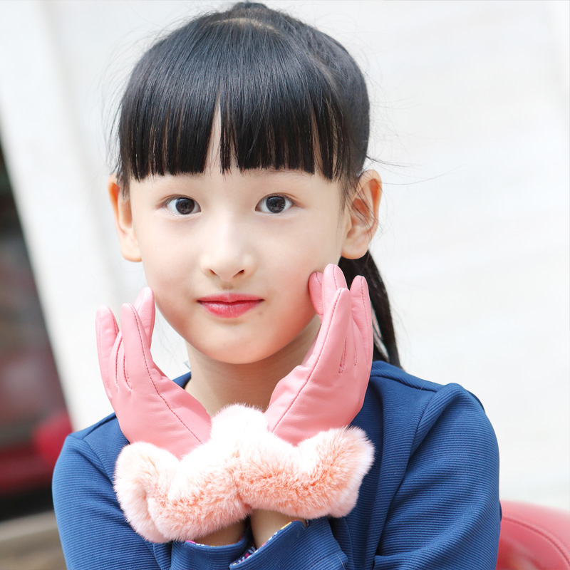 Children's gloves autumn and winter girl warm and suede thickened genuine leather five fingers CUHK child primary school children's birthday present