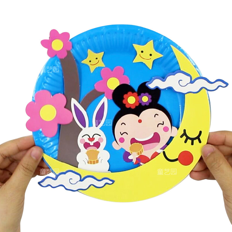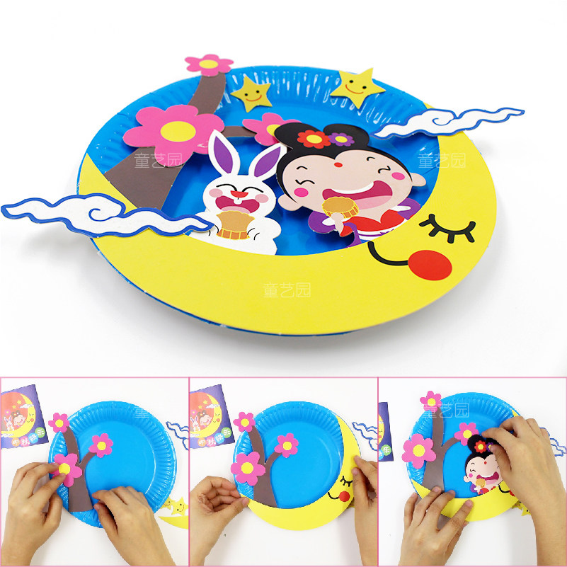 Mid-Autumn Festival moon creative paper plate stickers works kindergarten children diy handmade materials educational toys