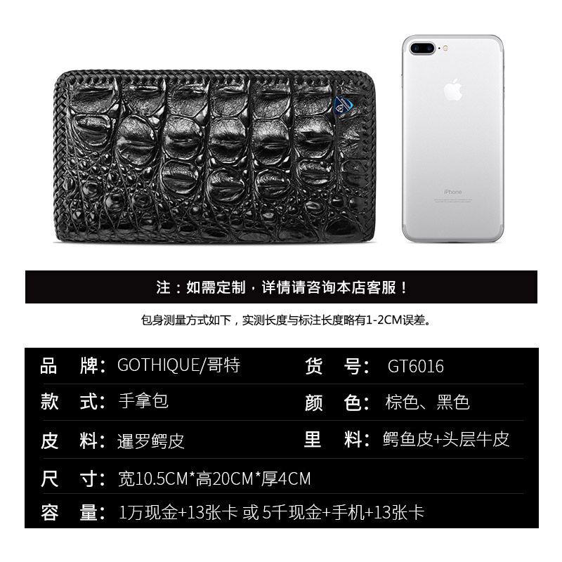 Gothic real crocodile leather handbag men's large-capacity multi-card handbag light luxury brand tide men's wallet long version