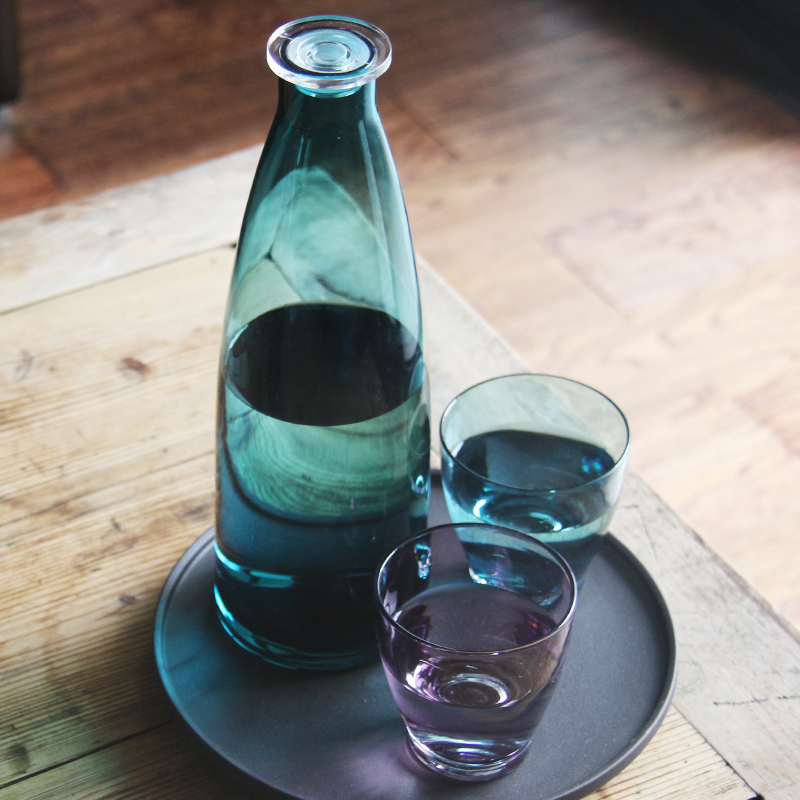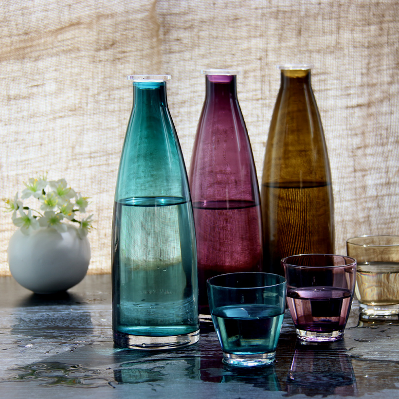 (blue water bottle containing cover) (Amber Water Bottle With Cover) (Blue Water Glass Single Only) (Purple Water Cup Single) (Blue Six Water Glasses) (Purple Six Water Glasses) Small Depository Dish